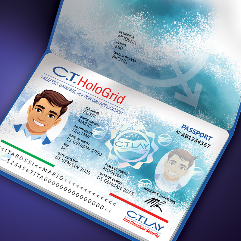 C.T.Lay’s expertise extends across a wide range of substrates, ensuring compatibility with various document formats and national standards. Whether clients require custom holograms or wish to apply their preferred designs, C.T.Lay provides the technical know-how and production infrastructure to deliver at scale. No more hologram dimensional limitations! With the innovative C.T.HoloGrid application system, you can now apply large holograms or multiple holograms onto passport data pages. This breakthrough technology allows for greater flexibility and creativity in hologram design and application. Our customer service team will support you throughout the design creation and application processes, making it easier than ever to bring your projects and ideas to life.