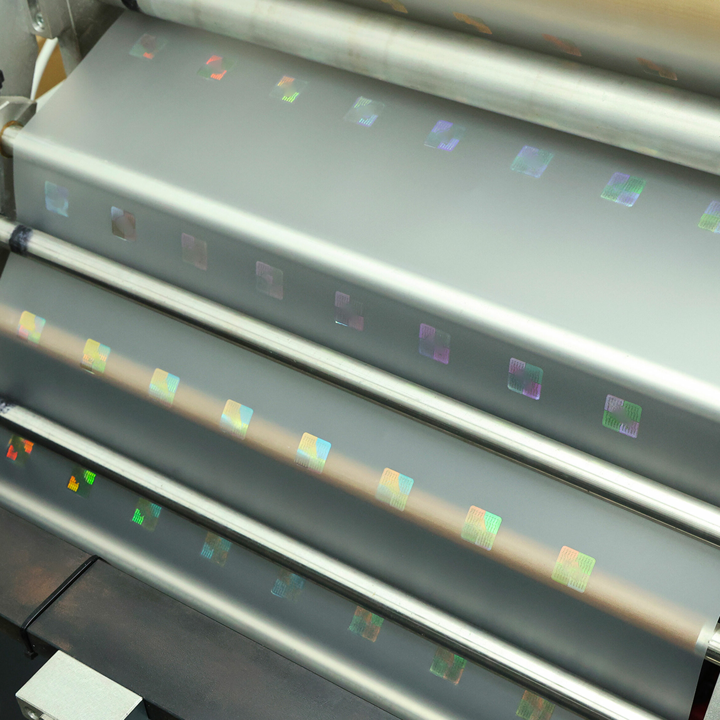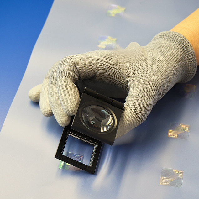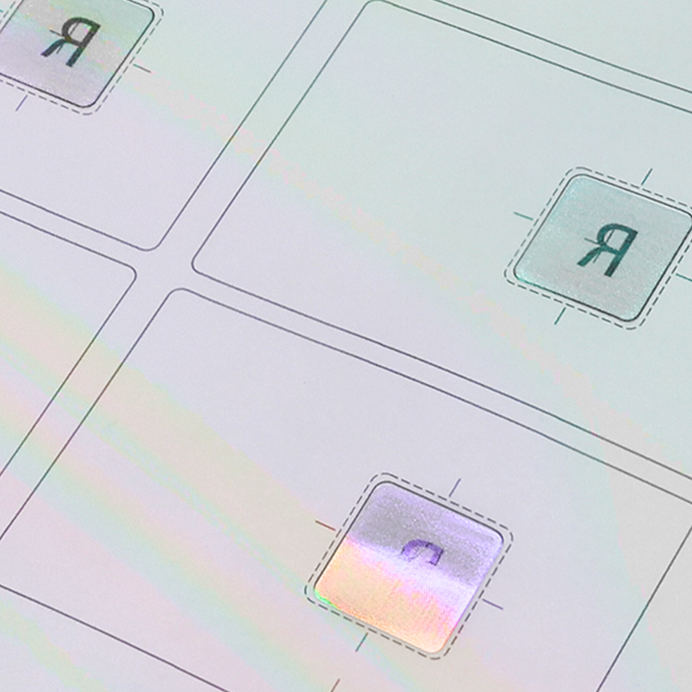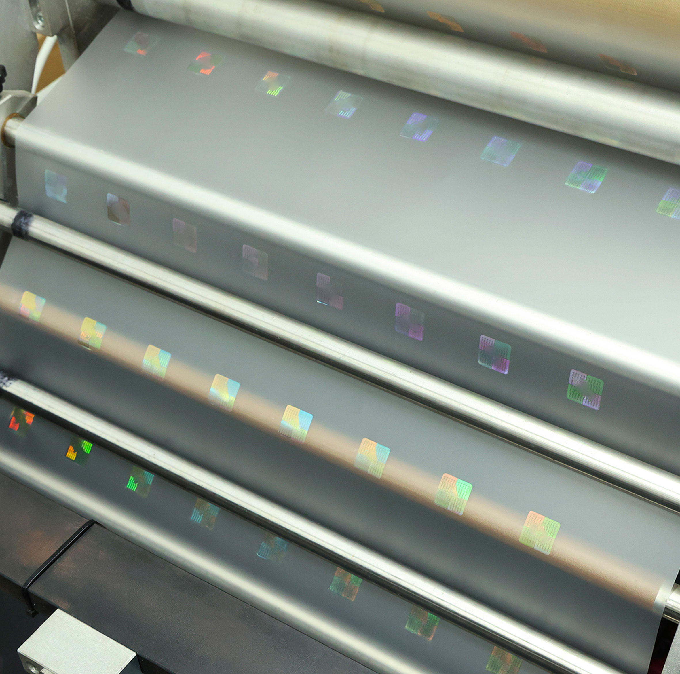 DOVID - Metallized - Partial dematallized - Patch - Big size holograms application - Passport data page size hologram - Card size hologram - Double holograms application - Manual quality control - 100 traceability - Intergraf certified - High security production - Roll to roll application - From a few sheets to …. -